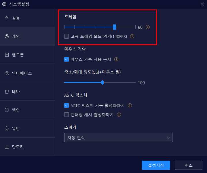 너무 렉이 심하다 싶으면 20으로 하시고 30~60 왔다갔다 하면서 적정선을 찾아보시면 됩니다. 내 컴퓨터 사양이 너무 좋다 싶으면 120까지 해도 되지만 웬만한 모바일 게임은 그정도 고프레임이 필요하지 않기 때문에 저는 30이나 60으로 두고 사용합니다.